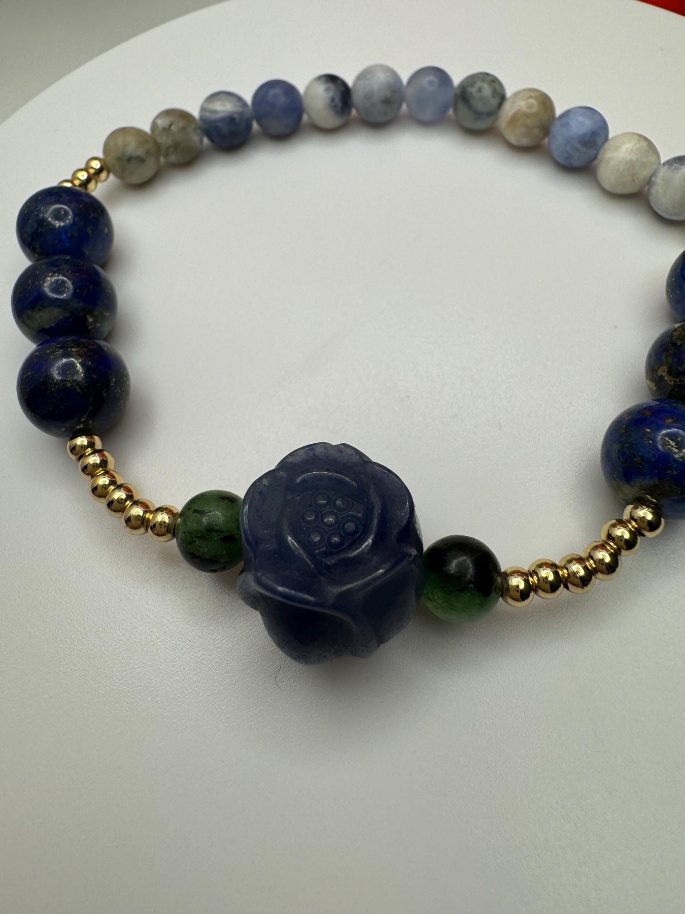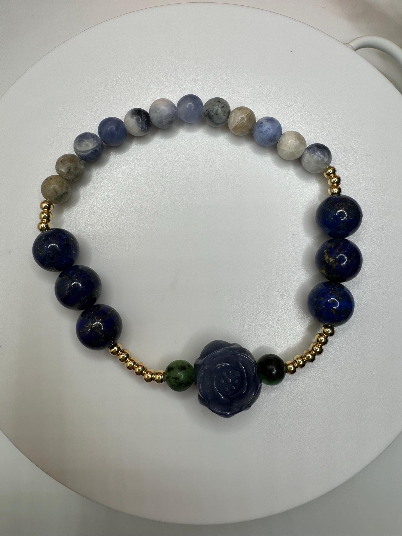 Alashan agate is said to transform negative energy into positive energy, while sodalite brings order and calmness to the mind, encourages truth, intuition, and the verbalization of feelings. Lastly, lapis lazuli has been associated with royalty, courage, wisdom, friendship and truth. *chef's kiss*
